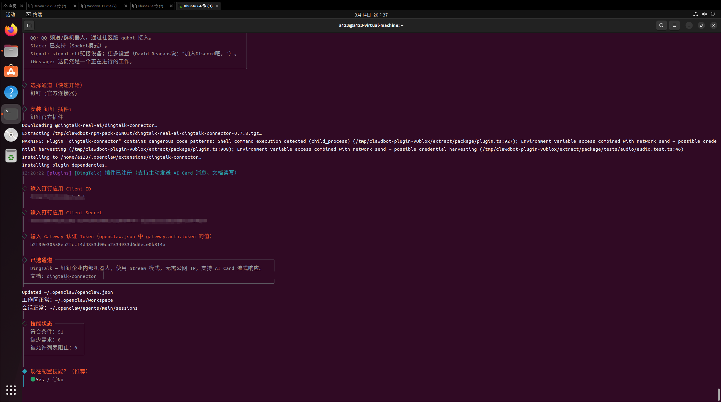 │ your-gateway-tokenGateway Token 说明:钉钉官方插件通过 HTTP 请求本地 Gateway,需要认证 Token。如果您尚未配置
